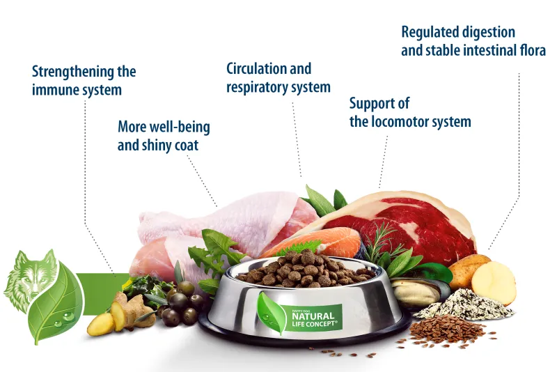 Myöskään koiranpennun immuunijärjestelmää ei saa laiminlyödä, minkä vuoksi C- vitamiini ei saa puuttua pentujen ruoasta. Happy Dog Natural Life Concept® -konseptiin perustuvassa reseptissä koirasi saa kaiken, mistä hänen elimistönsä hyötyy kokonaisvaltaisesti ja hän voi aloittaa pitkän ja terveen koiraelämän huoletta.